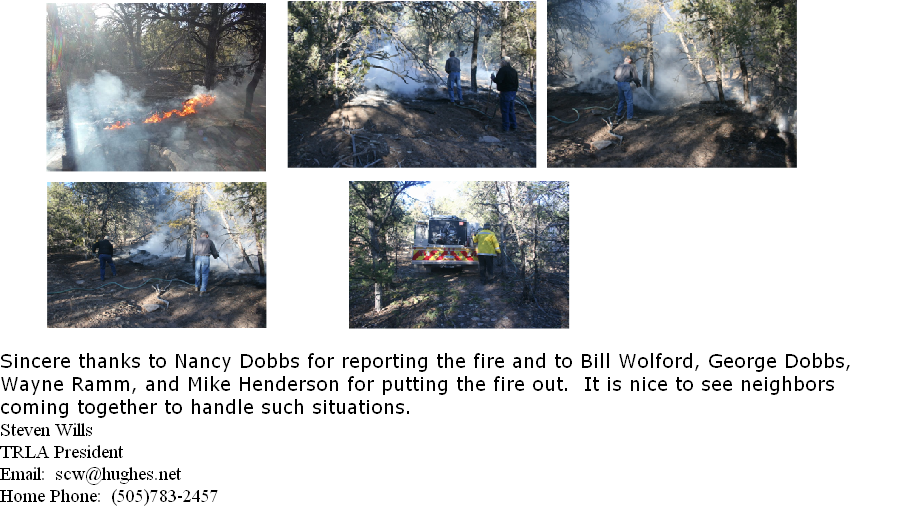 Sincere thanks to Nancy Dobbs for reporting the fire and to Bill Wolford, George Dobbs, Wayne Ramm, and Mike Henderson for putting the fire out. It is nice to see neighbors coming together to handle such situations.